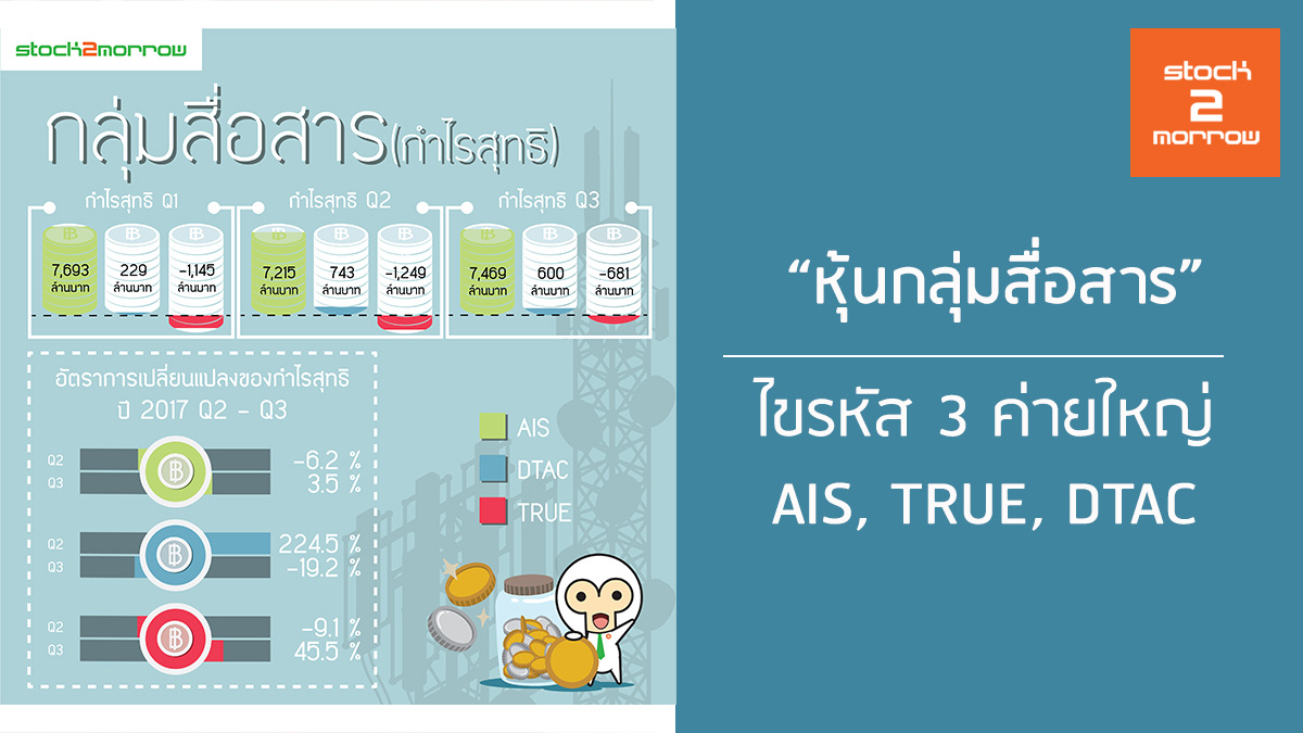 ไขรหัส 3 ค่ายใหญ่ หุ้นกลุ่มสื่อสาร AIS, TRUE, DTAC ทั้งเรื่องของ รายได้รวม, กำไรสุทธิ, รายได้เฉลี่ย/หมายเลข/เดือน และจำนวนลูกค้า ของไตรมาส 3/60