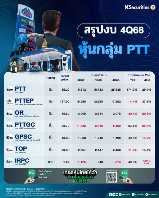 สรุปงบ 4Q68 หุ้นกลุ่ม PTT