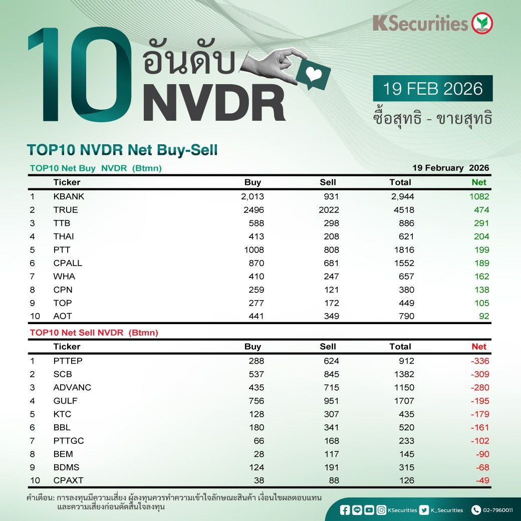 10 อันดับ NVDR ซื้อ-ขายสุทธิ