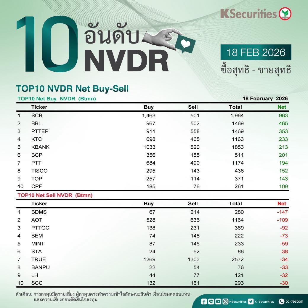 10 อันดับ NVDR ซื้อ-ขายสุทธิ