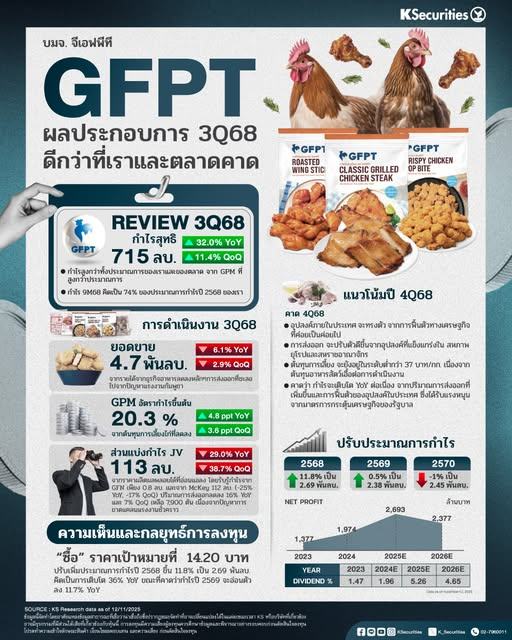 GFPT ผลประกอบการไตรมาส 3/68 ดีกว่าที่เราและตลาดคาด