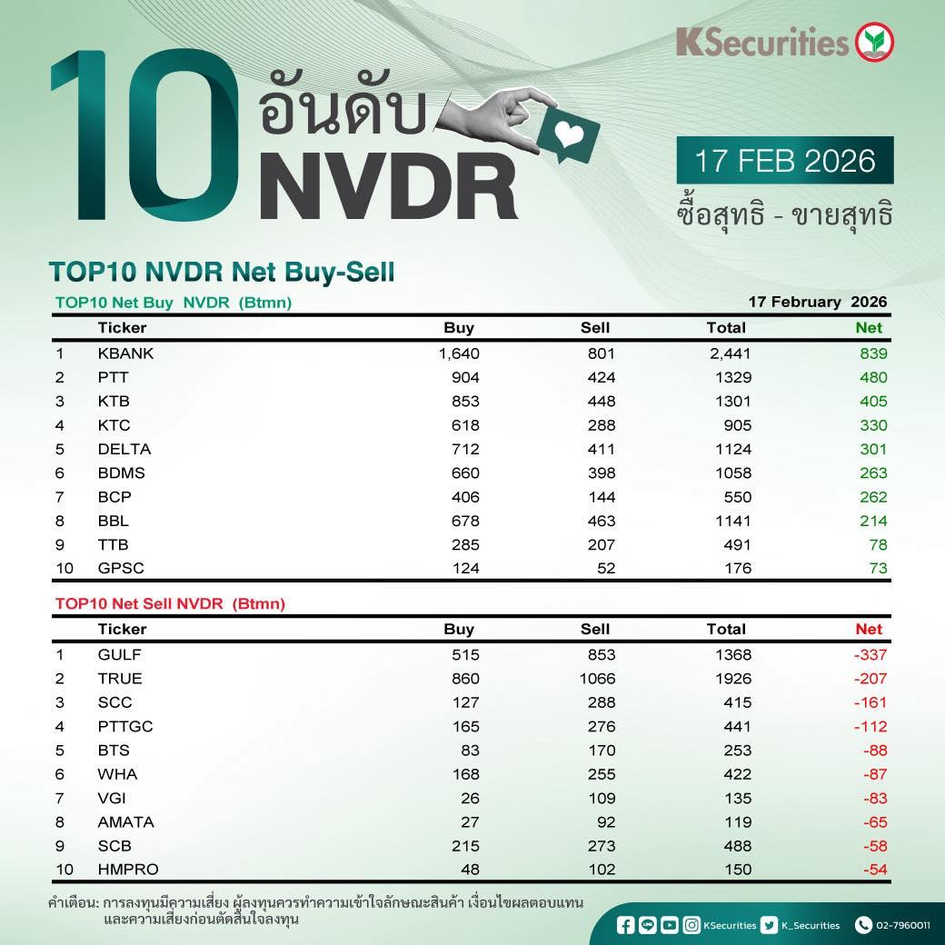10 อันดับ NVDR ซื้อ-ขายสุทธิ