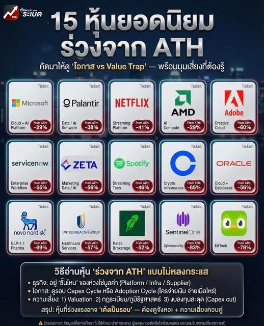 15 หุ้นยอดนิยม “ร่วงจาก ATH” จะเป็น “โอกาส” หรือ “Value Trap” กันแน่