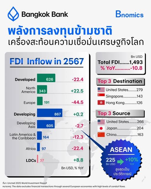 FDI ปีนี้บอกเราว่า โลกกำลังค้นหาความมั่นคง ความยืดหยุ่น และเสถียรภาพทางนโยบาย ประเทศที่รักษาความเชื่อมั่นได้ จะกลายเป็นแม่เหล็กใหม่ของเงินทุนในรอบถัดไป