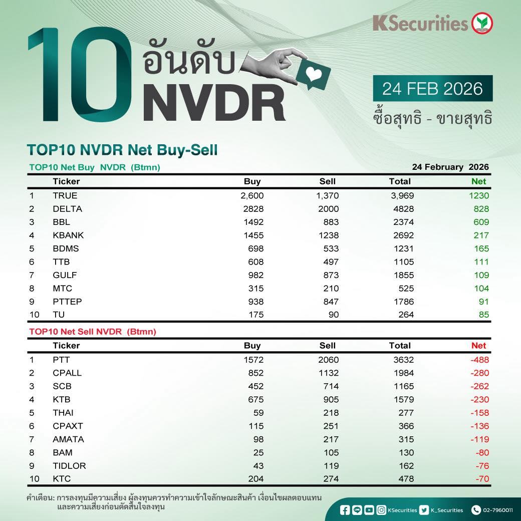 10 อันดับ NVDR ซื้อ-ขายสุทธิ