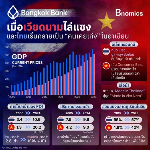 ขนาดเศรษฐกิจของไทยใหญ่กว่าเวียดนามมากกว่า 3 เท่า คือจุดหมายของนักลงทุน คือฐานการผลิต คือศูนย์กลางโลจิสติกส์ของภูมิภาค