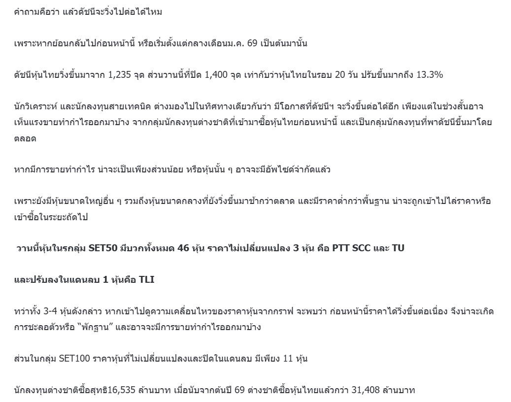 1400 จุด! ไปต่อได้ แต่ไม่แรง