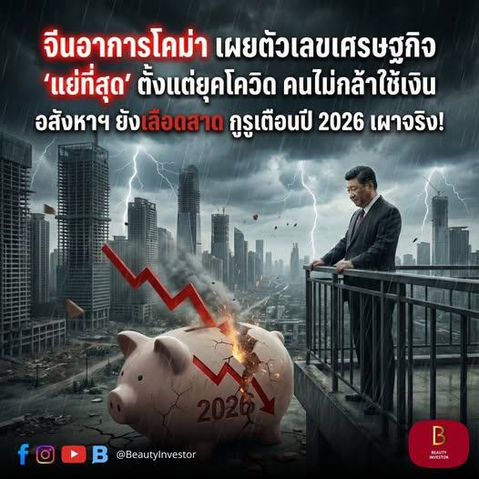 จีนอาการโคม่า เผยตัวเลขเศรษฐกิจ "แย่ที่สุด" ตั้งแต่ยุคโควิด คนไม่กล้าใช้เงิน อสังหาฯ ยังเลือดสาด กูรูเตือนปี 2026 เผาจริง!