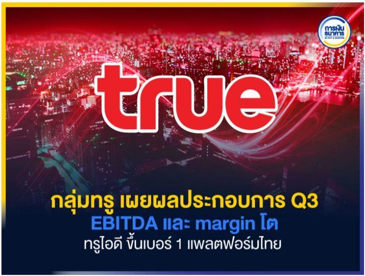 กลุ่มทรู เผยผลประกอบการ Q3 EBITDA และ margin โต ทรูไอดี ขึ้นเบอร์ 1 แพลตฟอร์มไทย