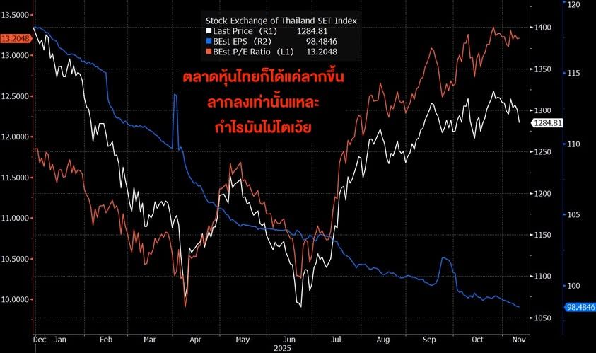 ตลาดหุ้นไทยก็ได้แค่ลากขึ้นลากลงเท่านั้นแหละ กำไรมันไม่โตเว้ย