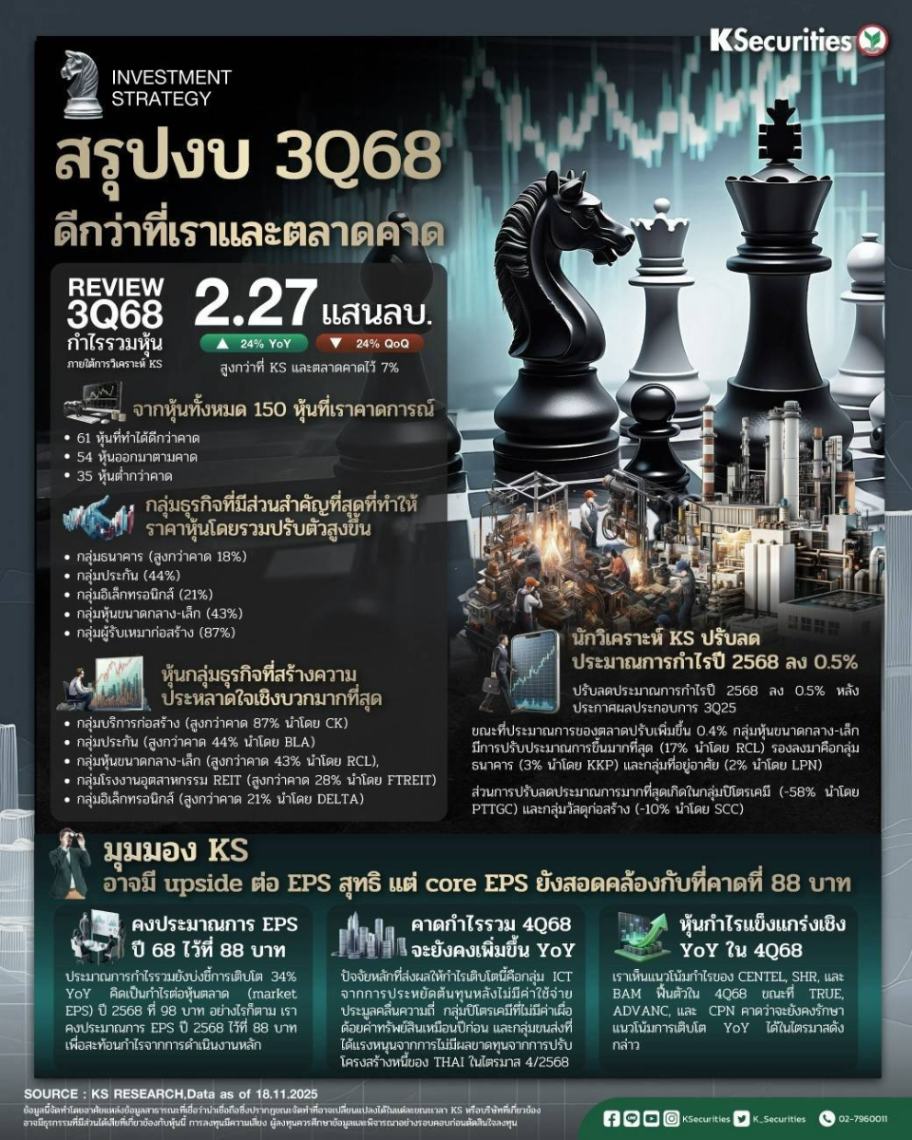 ผลประกอบการ 3Q68 ดีกว่าที่เราและตลาดคาด