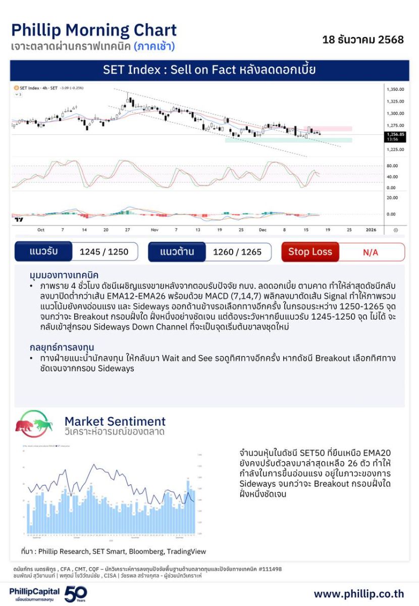 กลยุทธ์การลงทุนประจำวัน 18 ธันวาคม 2568
