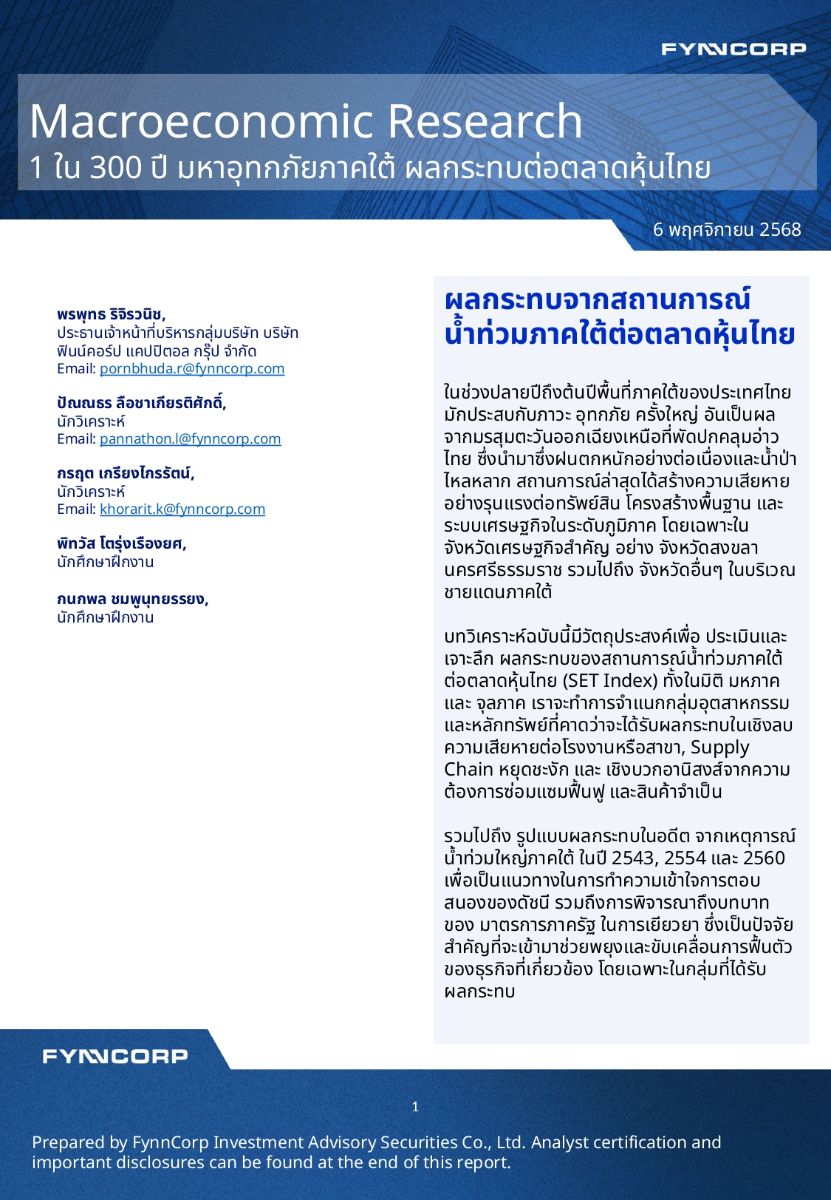 1 ใน 300 ปี มหาอุทกภัยภาคใต้ และ ผลกระทบต่อตลาดหุ้นไทย