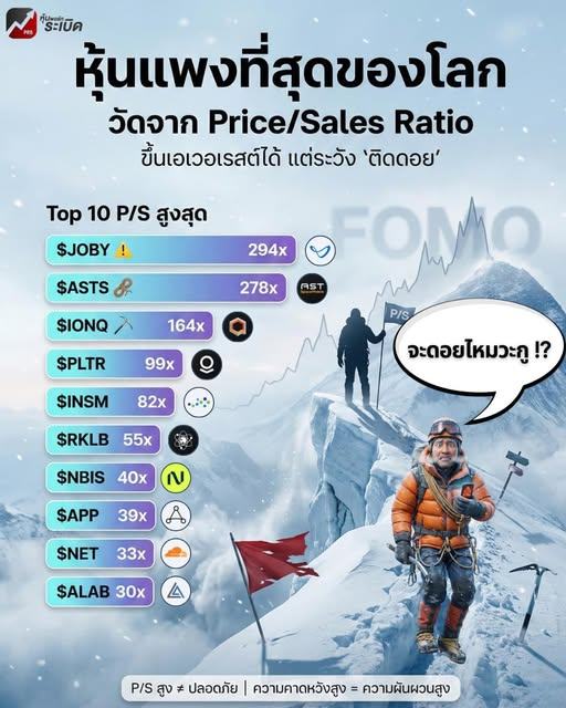 หุ้นแพงที่สุดของโลก (วัดด้วย Price/Sales) ขึ้นเอเวอเรสต์ได้…แต่ก็ “ติดดอย” ได้เหมือนกัน