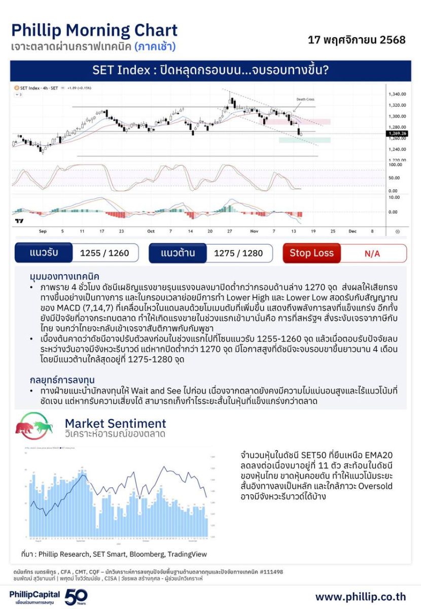 กลยุทธ์การลงทุนประจำวัน 17 พฤศจิกายน 2568