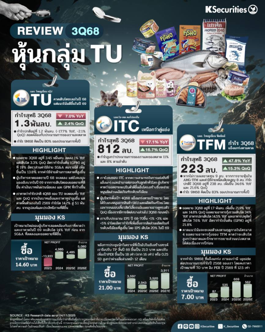 สรุปงบ 3Q68 TU ITC TFM