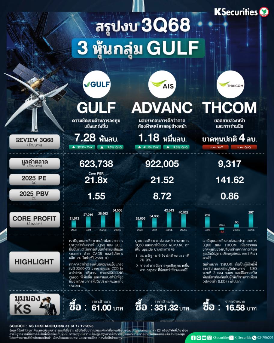 สรุปงบ 3Q68 3 หุ้นกลุ่ม GULF