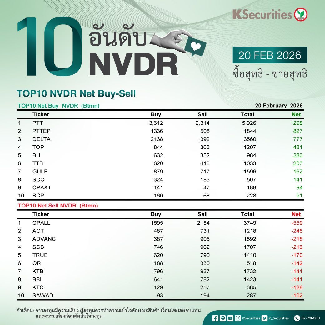 10 อันดับ NVDR ซื้อ-ขายสุทธิ