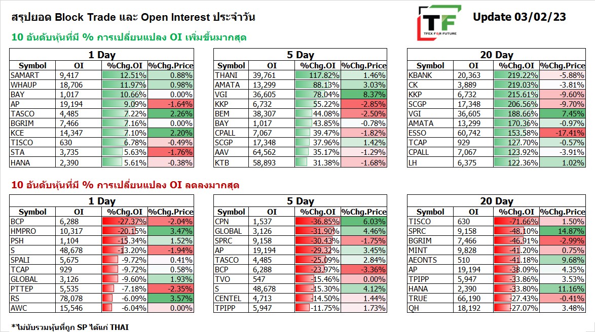 <<<āļāļēāļĢāđāļāļĨāļĩāđāļĒāļāđāļāļĨāļāļāđāļē Open Interest āļāļāļ SSF&Block Trade >>>>>>