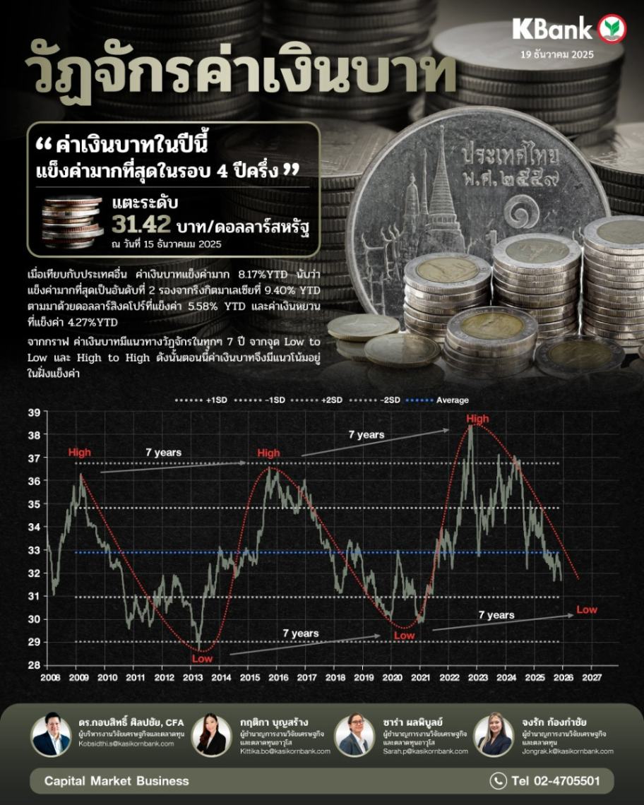 ค่าเงินบาทในปีนี้แข็งค่ามากที่สุดในรอบ 4 ปีครึ่ง แตะระดับ 31.42 บาท/ดอลลาร์สหรัฐ ณ วันที่ 15 ธันวาคมม 2025
